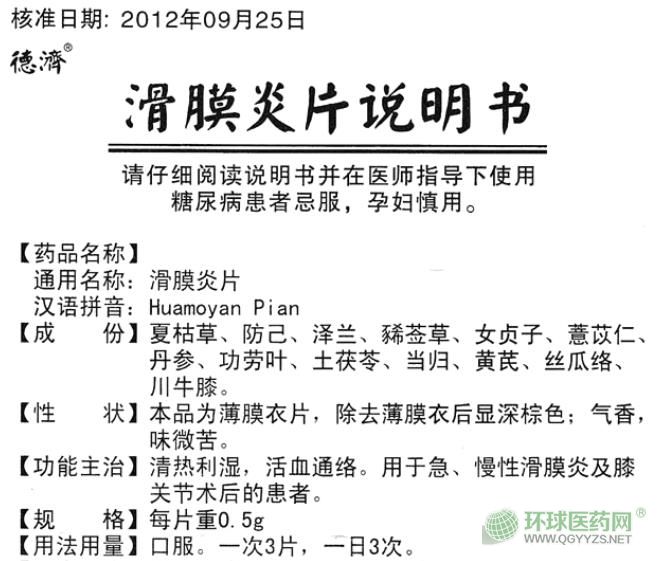【藥品名稱】通用名稱:滑膜炎片
