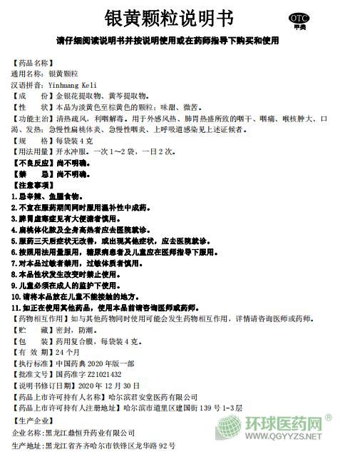 通用名稱:銀黃顆粒