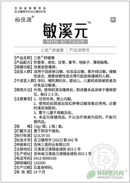 敏溪元™三愈®舒緩膏說(shuō)明書(shū)文字版(單品單備案,網(wǎng)上可查)