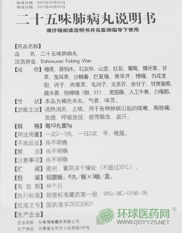 通用名稱:二十五味肺病丸