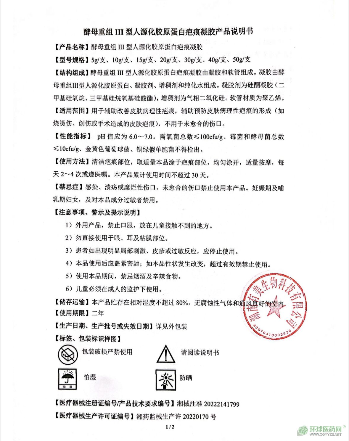 產(chǎn)品名稱:重組III型人源化膠原蛋白疤痕凝膠