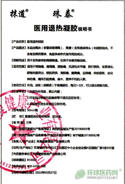 珠泰醫(yī)用退熱凝膠生產(chǎn)廠家