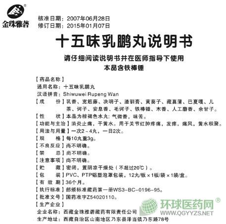 【藥品名稱】通用名稱:十五味乳鵬丸