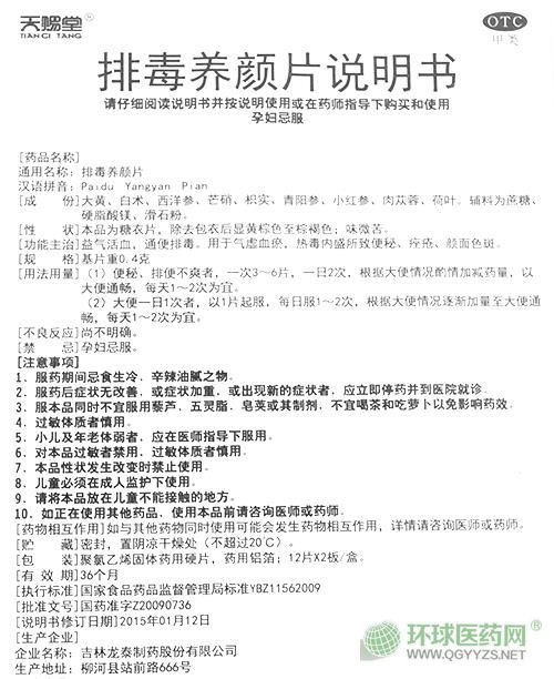 【藥品名稱】 排毒養(yǎng)顏片(天賜堂)