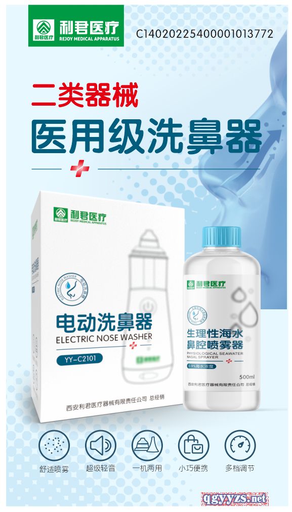 洗鼻器是一種用于清洗鼻腔的工具。它通常借用一定壓力將生理鹽水送入鼻孔,從一側(cè)鼻孔排出,或從口部排出。該產(chǎn)品通過生理鹽水自身的殺菌作用及水流的沖擊力,將鼻腔內(nèi)已聚集的致病及污洉排出,從而使鼻腔恢復(fù)正常的生理環(huán)境,恢復(fù)鼻腔的自我排毒功能。