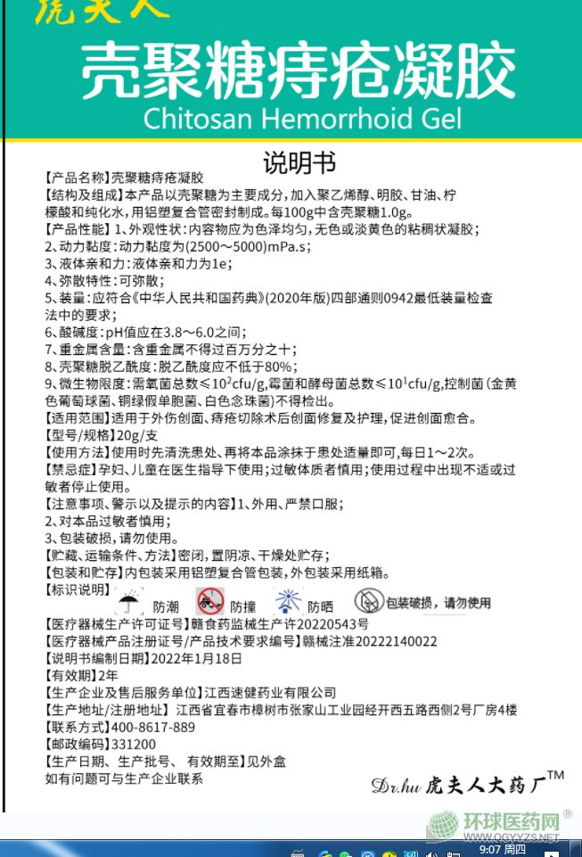 虎夫人殼聚糖痔瘡凝膠說明書文字版