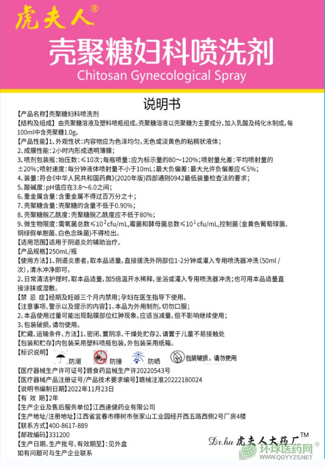 虎夫人殼聚糖婦科噴洗劑說明書文字版
