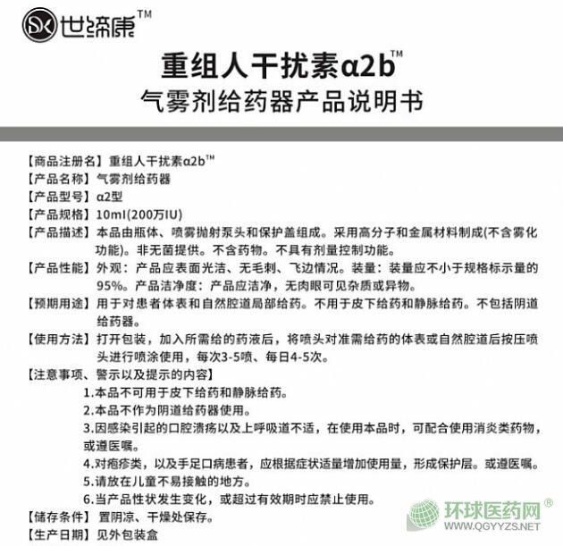 重組人干擾素α2b™氣霧劑給藥器招商熱線