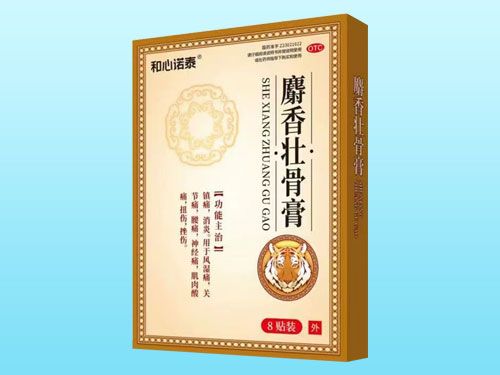 麝香壯骨膏,具有鎮(zhèn)痛、消炎之功效。用于風(fēng)濕痛,關(guān)節(jié)痛,腰痛,神經(jīng)痛,肌肉酸痛,扭傷,挫傷。