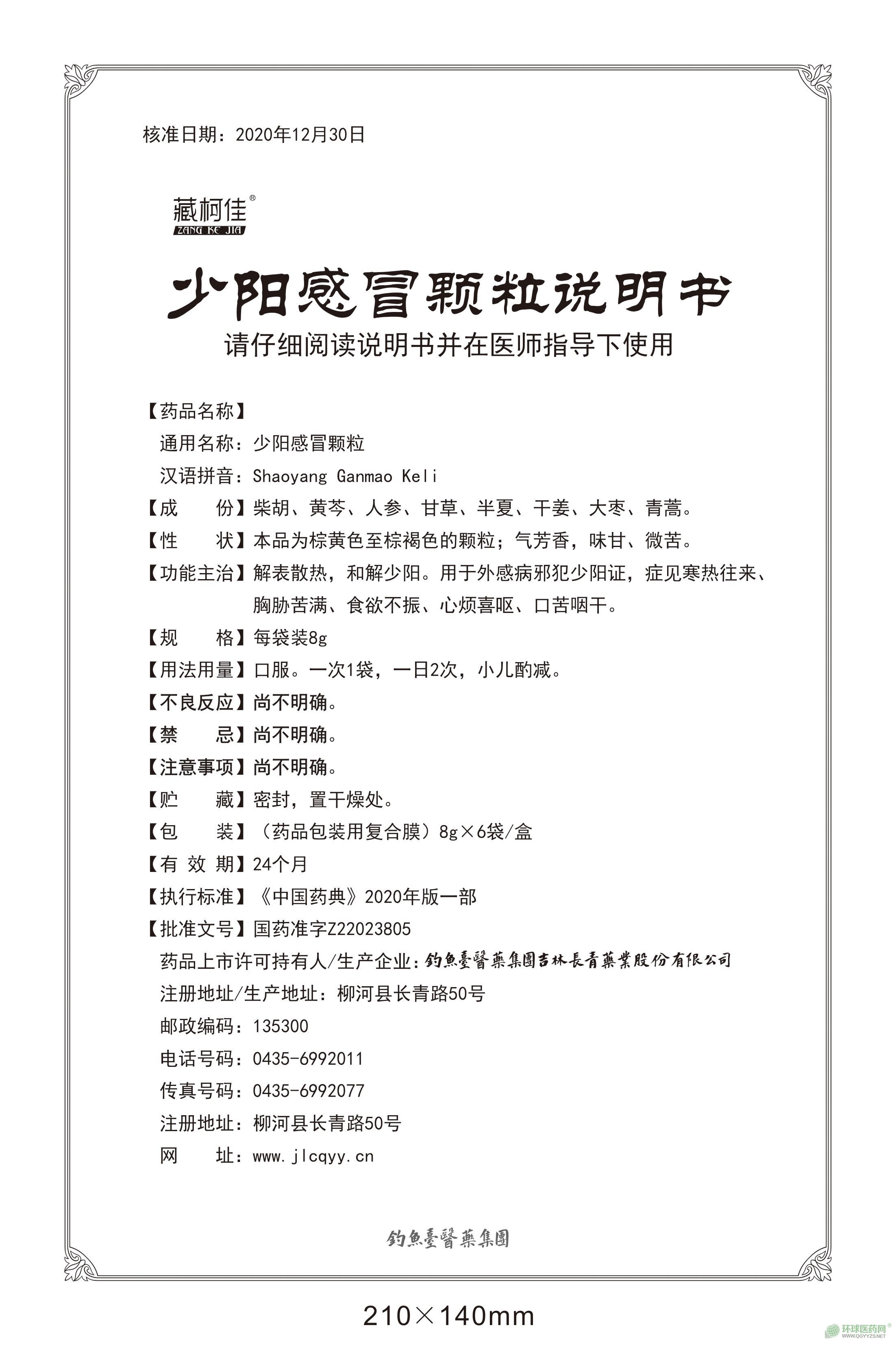 【藥品名稱】通用名稱:少陽感冒顆粒