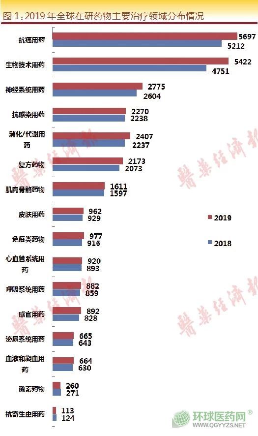 整體來看,抗癌藥物、生物技術(shù)類藥物、神經(jīng)系統(tǒng)藥物、抗感染藥物和消化/代謝藥物為排名居TOP5的治療領(lǐng)域,與2018年排名基本一致。