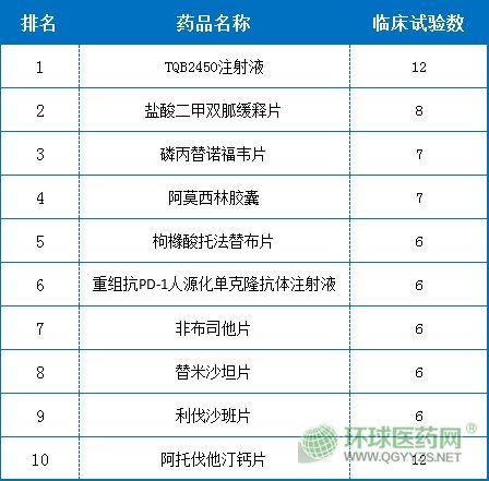 5、2019上半年臨床試驗(yàn)最受關(guān)注的藥品TOP10