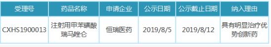 表:恒瑞注射用甲苯磺酸瑞馬唑侖擬優(yōu)先審評情況