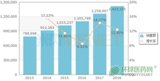 據(jù)米內(nèi)網(wǎng)數(shù)據(jù),近幾年來,中國公立醫(yī)療機(jī)構(gòu)化學(xué)藥終端麻醉劑的市場逐年擴(kuò)容,2018年實現(xiàn)銷售額141.51億元,同比增長12.4%。