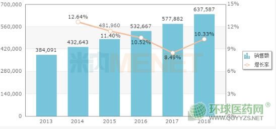 據(jù)米內(nèi)網(wǎng)數(shù)據(jù),2018年中國公立醫(yī)療機構終端氨氯地平銷售額為63.76億元,輝瑞與多家仿制藥企競爭國內(nèi)市場。從2013-2018年,絡活喜始終以超過五成的市場份額穩(wěn)居國內(nèi)市場第一,但其市場份額開始呈現(xiàn)下滑的趨勢,由2013年的64.12%下滑至2018年的57.75%。