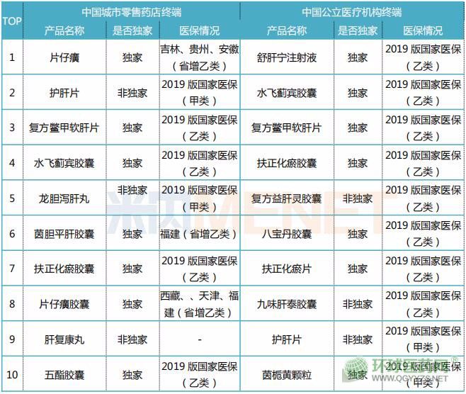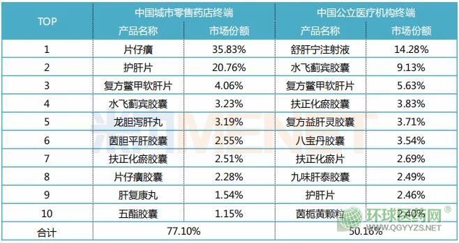 表1:2018年中成藥市場(chǎng)肝炎用藥產(chǎn)品TOP10