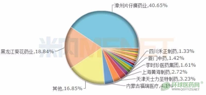 據(jù)米內(nèi)網(wǎng)數(shù)據(jù)顯示,片仔癀藥業(yè)的產(chǎn)品主要銷售市場(chǎng)在中國(guó)城市零售藥店終端,最近四年榜首位置無(wú)人撼動(dòng),市場(chǎng)份額從2015年的33.54%上漲至2018年40.65%。
