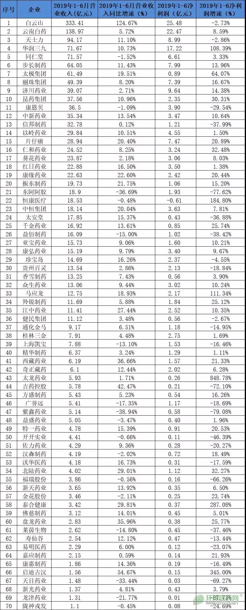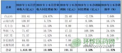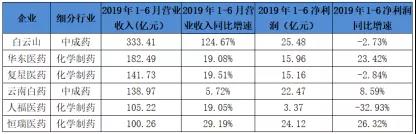 ▍6家藥企半年營收超百億,3家凈利超20億