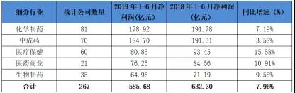 在化學(xué)藥、中成藥和生物制藥三個制藥工業(yè)細(xì)分領(lǐng)域,凈利增速最慢的要數(shù)中成藥,與其最快的增速形成反差,僅同比增長3.58%。