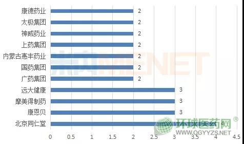 圖1:醫(yī)保新增獨(dú)家中成藥多于2個(gè)(含2個(gè))的企業(yè)