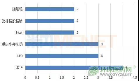 醫(yī)保新增58個(gè)獨(dú)家化學(xué)藥共涉及48家企業(yè),跨國(guó)藥業(yè)與國(guó)內(nèi)藥企所占品種數(shù)不分伯仲,但從單個(gè)企業(yè)擁有的品種數(shù)看,超過(guò)2個(gè)品種的企業(yè)中僅1家為國(guó)內(nèi)藥企。諾華以4個(gè)新增獨(dú)家化學(xué)藥領(lǐng)先,LEO、重慶華邦制藥以3個(gè)品種數(shù)緊接其后。
