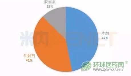 這32個(gè)未能通過一致性評(píng)價(jià)的產(chǎn)品,從劑型來看,口服劑型片劑、膠囊劑共有19個(gè),合計(jì)占比達(dá)59%,注射劑有13個(gè),占比約為41%。