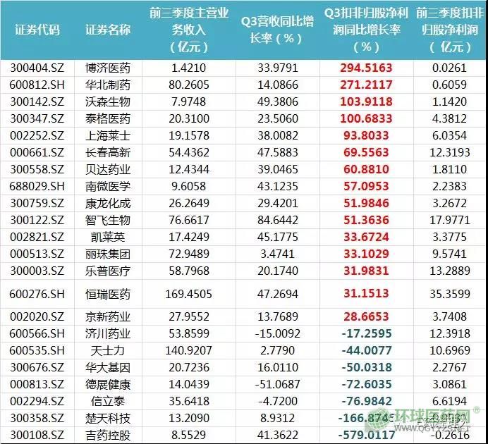 除了在正常預(yù)期內(nèi)的波動(dòng)之外,多家企業(yè)也表現(xiàn)出了“大漲大跌”的態(tài)勢(shì)。其中,華北制藥業(yè)績(jī)大漲,前三季度實(shí)現(xiàn)營(yíng)業(yè)收入80.26億元,凈利潤(rùn)9152.94萬(wàn)元,其中單季度扣非歸股凈利潤(rùn)同比增長(zhǎng)271%。