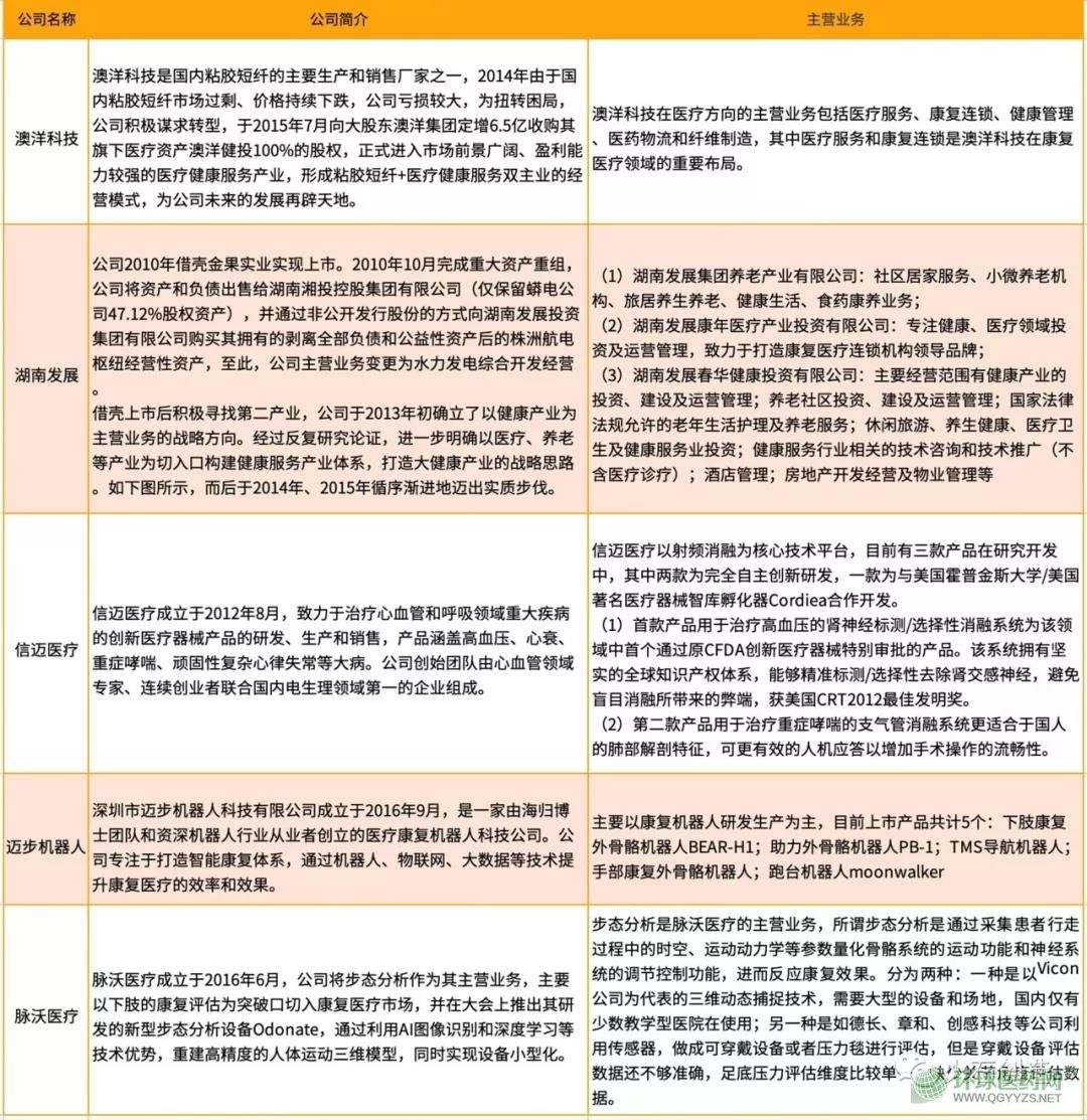 我國(guó)康復(fù)醫(yī)療處于初級(jí)階段,隨著我國(guó)人口老齡化日趨嚴(yán)重,健康意識(shí)不斷增強(qiáng),康復(fù)醫(yī)療市場(chǎng)需求不斷加大,未來(lái)市場(chǎng)空間前景廣闊,上市公司紛紛在康復(fù)醫(yī)療市場(chǎng)進(jìn)行布局,并涌現(xiàn)出多家龍頭企業(yè)。