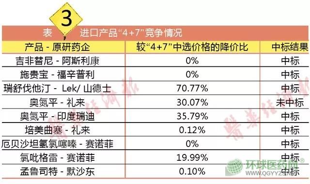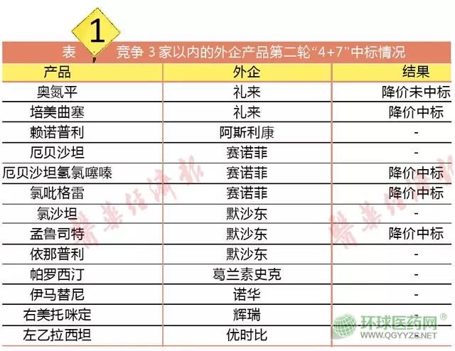 也就是說,專利過期原研企業(yè)除了首輪“4+7”中標(biāo)的兩個(gè)產(chǎn)品企業(yè)(施貴寶的福辛普利口服常釋劑型、阿斯利康的吉非替尼,只要保持“4+7”的價(jià)格就必定中標(biāo))外,其余專利過期原研藥廠家如果接受“4+7”中選藥品差比折算后的價(jià)格,并且目前通過一致性評(píng)價(jià)的國(guó)內(nèi)廠家不超過2家的,非常有可能會(huì)以“4+7”中選藥品差比折算后的價(jià)格爭(zhēng)奪市場(chǎng)。那么,目前競(jìng)爭(zhēng)3家以內(nèi)、愿意降價(jià)換入圍“4+7”的有哪些原研藥呢?