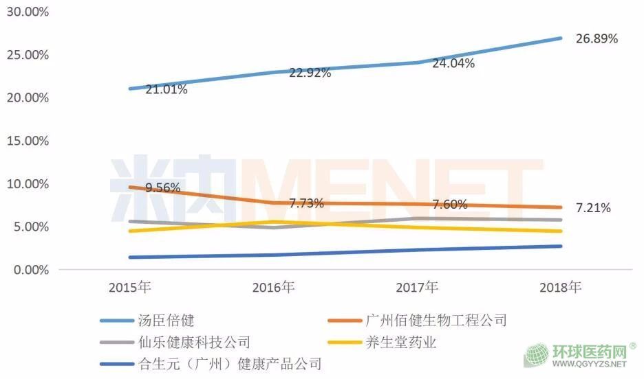 湯臣倍健年報(bào)顯示,2015年根據(jù)公司戰(zhàn)略規(guī)劃和經(jīng)營(yíng)發(fā)展需要,對(duì)全資子公司廣州佰健生物工程公司的業(yè)務(wù)進(jìn)行調(diào)整與收縮,關(guān)閉所有的營(yíng)養(yǎng)中心自營(yíng)店,原負(fù)責(zé)管理的湯臣倍健營(yíng)養(yǎng)中心聯(lián)營(yíng)店全部移交給湯臣藥業(yè)負(fù)責(zé)管理。從2015年起,在中國(guó)城市零售藥店終端,廣州佰健生物工程公司的市場(chǎng)份額逐漸縮小,湯臣倍健的市場(chǎng)份額隨之上漲,雖說有點(diǎn)像“左口袋出右口袋進(jìn)”的模式,但從合計(jì)市場(chǎng)份額來看,2015年為30.57%,到2018年已上漲到34.10%,湯臣倍健已握住了超過三分之一的中國(guó)零售藥店終端保健品市場(chǎng)。