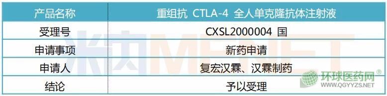 1月11日,復星醫(yī)藥發(fā)布公告稱,控股子公司復宏漢霖及漢霖制藥研制的重組抗CTLA-4全人單克隆抗體注射液用于無法切除或轉(zhuǎn)移性黑色素瘤、晚期腎細胞癌、微衛(wèi)星高度不穩(wěn)定性或錯配修復缺陷的轉(zhuǎn)移性結(jié)直腸癌治療以及黑色素瘤輔助治療獲國家藥監(jiān)局臨床試驗注冊審評受理。