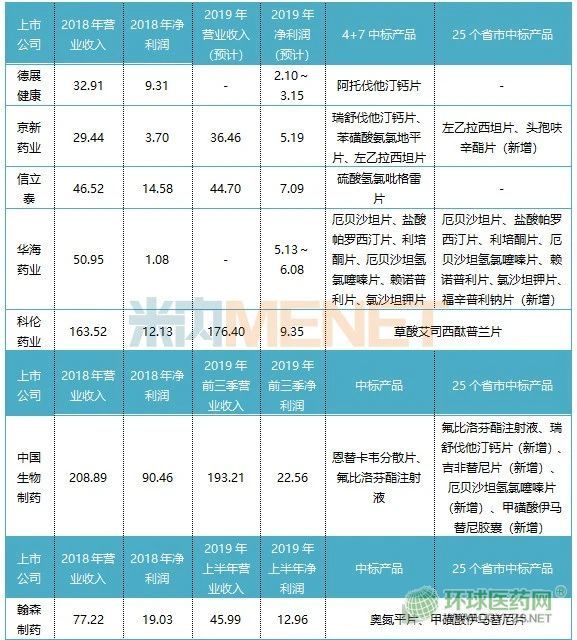 表1:第一批帶量采購中標(biāo)產(chǎn)品涉及上市公司的業(yè)績情況(單位:億元)
