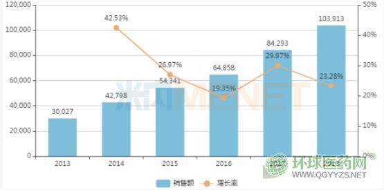 近年中國(guó)公立醫(yī)療機(jī)構(gòu)終端左乙拉西坦銷售情況(單位:萬(wàn)元)