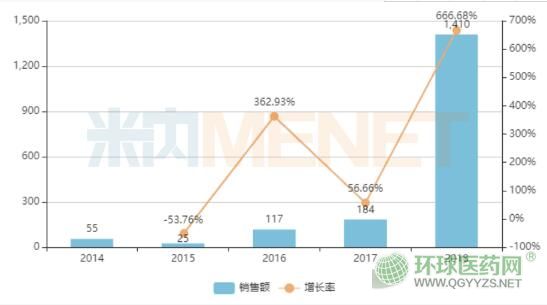 帕立骨化醇注射液由艾伯維研發(fā),于1998年4月17日獲FDA批準(zhǔn)上市,該藥用于預(yù)防和治療與慢性腎病5期相關(guān)的繼發(fā)性甲狀旁腺功能亢進(jìn)癥。該產(chǎn)品于2017年納入國家醫(yī)保目錄乙類,隨后在米內(nèi)網(wǎng)中國城市公立醫(yī)院、縣級(jí)公立醫(yī)院、城市社區(qū)中心及鄉(xiāng)鎮(zhèn)衛(wèi)生院(簡(jiǎn)稱中國公立醫(yī)療機(jī)構(gòu))終端大放異彩,銷售額高速增長,2018年銷售額為1410萬元,增長率超過600%,現(xiàn)為2019版國家醫(yī)保目錄乙類品種。