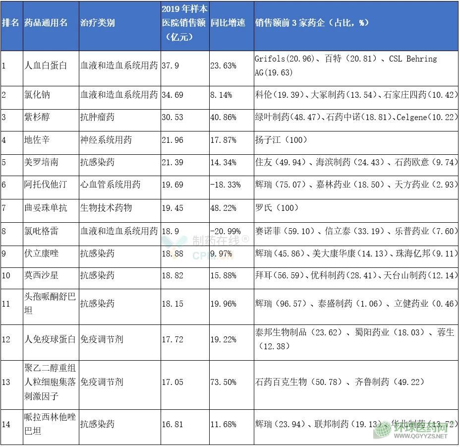2019年全國樣本醫(yī)院藥物銷售額TOP50