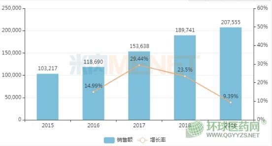 目前國內(nèi)上市銷售的丙戊酸鈉主要?jiǎng)┬陀凶⑸鋭、緩釋片、普?a href="http://m.x4y7.cn/chanpin/pianji/" title="片劑" target="_blank">片劑、糖漿劑及口服溶液。米內(nèi)網(wǎng)數(shù)據(jù)顯示,近幾年來丙戊酸鈉在中國城市公立醫(yī)院、縣級(jí)公立醫(yī)院、城市社區(qū)中心以及鄉(xiāng)鎮(zhèn)衛(wèi)生院(簡(jiǎn)稱中國公立醫(yī)療機(jī)構(gòu))終端銷售額逐年上漲,2019年實(shí)現(xiàn)銷售收入20.8億元,同比增長(zhǎng)9.39%。在抗癲癇藥TOP20通用名藥品中,以38.4%的市場(chǎng)份額排位第一。