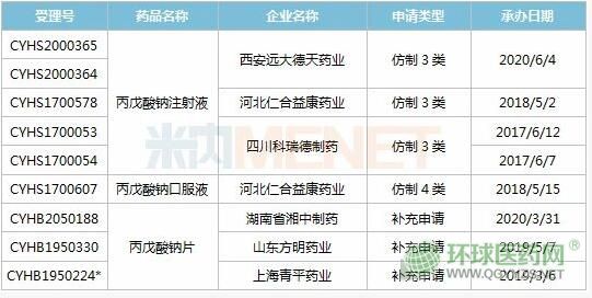 米內(nèi)網(wǎng)數(shù)據(jù)顯示,目前有3家藥企以仿制3類提交丙戊酸鈉注射液上市申請(qǐng),目前還未有企業(yè)獲批;河北仁合益康藥業(yè)以仿制4類提交丙戊酸鈉口服液上市申請(qǐng),目前還處于“在審評(píng)審批中(在藥審中心)”;3家藥企提交丙戊酸鈉片一致性評(píng)價(jià)補(bǔ)充申請(qǐng),其中上海青平藥業(yè)的產(chǎn)品已順利過評(píng),為國內(nèi)首家。
