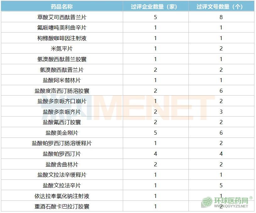 米內(nèi)網(wǎng)數(shù)據(jù)顯示,截至目前,已過評的精神興奮藥達(dá)19個(批文數(shù)量達(dá)52個),僅1家過評的產(chǎn)品有11個,包括了氟哌噻噸美利曲辛片、米氮平片、氫溴酸西酞普蘭膠囊、鹽酸阿米替林片、鹽酸多奈哌齊口崩片、鹽酸帕羅西汀腸溶緩釋片、鹽酸文拉法辛緩釋片、鹽酸文拉法辛片、依達(dá)拉奉氯化鈉注射液、重酒石酸卡巴拉汀膠囊,其中復(fù)星醫(yī)藥囊括了鹽酸阿米替林片(1個批文)、鹽酸文拉法辛片(5個批文)。