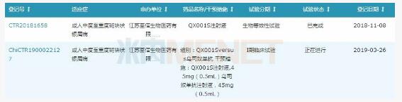 圖2:QX001S注射液國內(nèi)臨床試驗登記情況