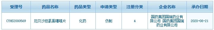 圖1:國藥集團(tuán)國瑞藥業(yè)的厄貝沙坦氫氯噻嗪片注冊(cè)情況