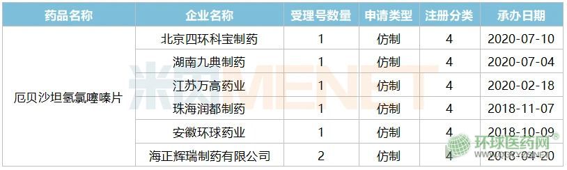 表1:2018年至今在審的厄貝沙坦氫氯噻嗪仿制上市申請(qǐng)情況