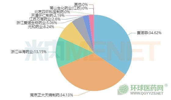 圖2:2019年厄貝沙坦氫氯噻嗪的企業(yè)競爭格局