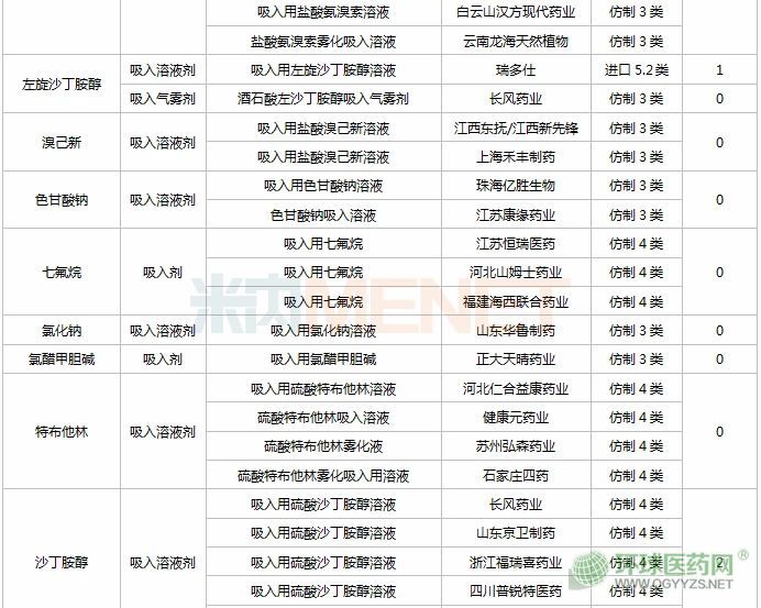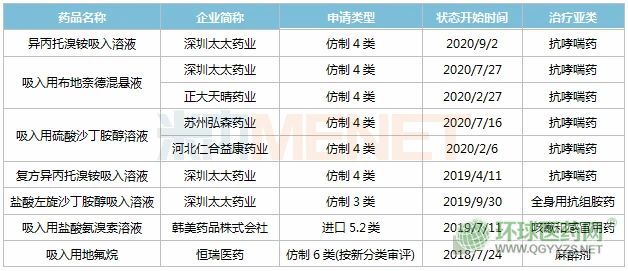 注:據(jù)2019年國家醫(yī)保目錄凡例,吸入劑分為氣霧劑、粉霧劑、吸入劑、吸入粉霧劑、干粉吸入劑、粉吸入劑、霧化溶液劑、吸入氣霧劑、吸入(用)溶液、吸入(用)混懸液、(鼻用)噴霧劑、鼻吸入氣霧劑、霧化吸入用混懸液、吸入(用)氣霧劑、霧化液。數(shù)據(jù)統(tǒng)計截至9月14日,如有疏漏,歡迎指正!