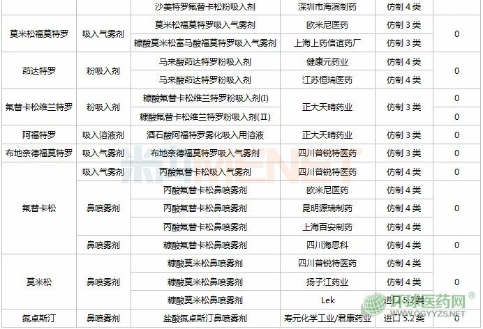 17個吸入劑品種暫無仿制藥獲批上市,其中9個品種國內(nèi)市場暫時處于空白狀態(tài),8個品種僅原研廠家的產(chǎn)品上市銷售;10個品種有企業(yè)獨家以新分類報產(chǎn),獲得首仿的幾率較大,四川普銳特、正大天晴、長風藥業(yè)分別有3個、3個、2個。