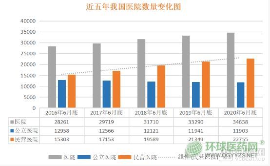 眾所周知,從2001年國家放開醫(yī)療市場以來,我國的民營醫(yī)院數(shù)量迎來了快速增長。根據(jù)國家衛(wèi)健委發(fā)布的全國醫(yī)療衛(wèi)生機構(gòu)數(shù)顯示,截至2020年6月底,全國醫(yī)院數(shù)量達(dá)到3.5萬個,其中公立醫(yī)院1.2萬個,民營醫(yī)院2.3萬個。與2016年同期比較,我國民營醫(yī)院數(shù)量在5年時間里增長了近50%。不難看出,無論從規(guī)模還是增速來看民營醫(yī)院均已超過公立醫(yī)院。