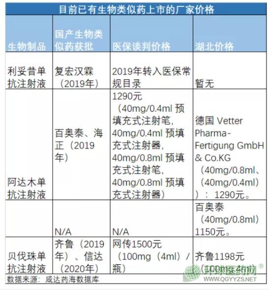 百奧泰的阿達(dá)木單抗注射液曾在天津報(bào)價(jià)1160元,在《湖北省藥品采購(gòu)準(zhǔn)入結(jié)果(第六批)》沒(méi)有成功掛網(wǎng),《湖北省藥品采購(gòu)準(zhǔn)入公示表(第七批)》的價(jià)格為1150元,有望成功掛網(wǎng)。
