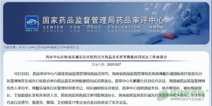 10月27日,國(guó)家藥品監(jiān)督管理局藥品審評(píng)中心(CDE)官網(wǎng)發(fā)布消息,CDE與國(guó)家藥品監(jiān)督管理局藥品注冊(cè)司、海南省藥品監(jiān)督管理局及海南博鰲樂(lè)城國(guó)際醫(yī)療旅游先行區(qū)管理局在樂(lè)城先行區(qū)聯(lián)合舉辦藥品真實(shí)世界數(shù)據(jù)應(yīng)用試點(diǎn)座談會(huì)。