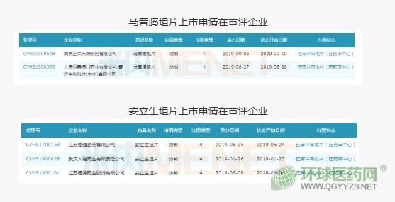 米內(nèi)網(wǎng)數(shù)據(jù)顯示,南京正大天晴、上海宣泰海門藥業(yè)/普濟(jì)生物科技兩家企業(yè)的馬昔騰坦片在審評(píng)中;武漢人福利康藥業(yè)、江蘇德源藥業(yè)和江蘇嘉逸醫(yī)藥等3家企業(yè)的安立生坦片在審評(píng)中。