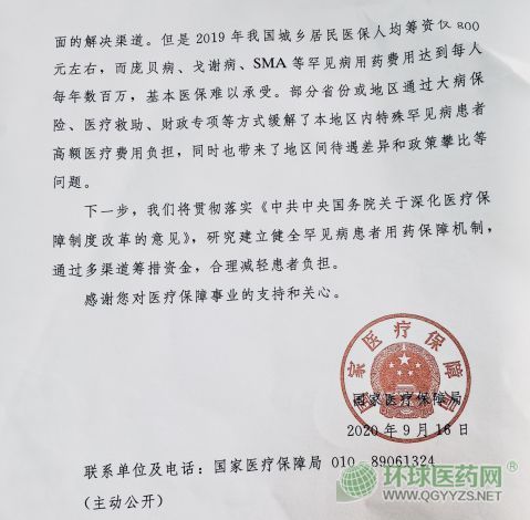 國(guó)家醫(yī)保局九月的回函中稱,醫(yī)保部門高度重視罕見(jiàn)病患者的醫(yī)療保障工作,但考慮到2019年我國(guó)城鄉(xiāng)居民醫(yī)!叭司I資僅800元左右”,對(duì)于“每年每人數(shù)百萬(wàn)”藥費(fèi)的戈謝病,基本醫(yī)!半y以承受”。這一答復(fù)在黃細(xì)花看來(lái)“還不是很樂(lè)觀”。此外答復(fù)還提到,部分地區(qū)對(duì)特殊罕見(jiàn)病患者高額醫(yī)療費(fèi)用負(fù)擔(dān)的緩解,“帶來(lái)了地區(qū)間待遇差異和政策攀比等問(wèn)題”,讓黃細(xì)花不甚滿意。