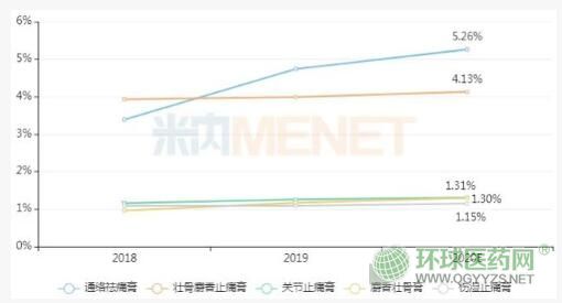 羚銳制藥的通絡(luò)祛痛膏、壯骨麝香止痛膏、關(guān)節(jié)止痛膏等5個產(chǎn)品均在品牌TOP20中。其中,通絡(luò)祛痛膏是獨家產(chǎn)品,功能主治活血通絡(luò),散寒除濕、消腫止痛,主要用于腰部、膝部骨性關(guān)節(jié)炎瘀血停滯等。米內(nèi)網(wǎng)數(shù)據(jù)顯示,近年在重點城市實體藥店通絡(luò)祛痛膏快速增長,2019年銷售額突破1億元大關(guān),預(yù)計2020年再創(chuàng)新高。